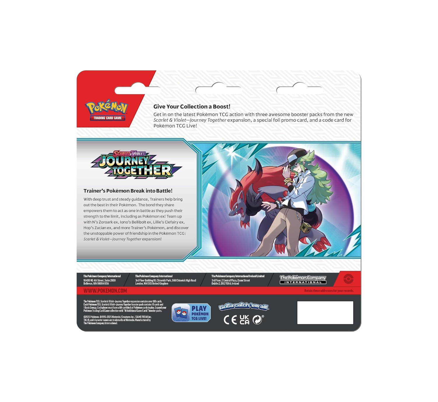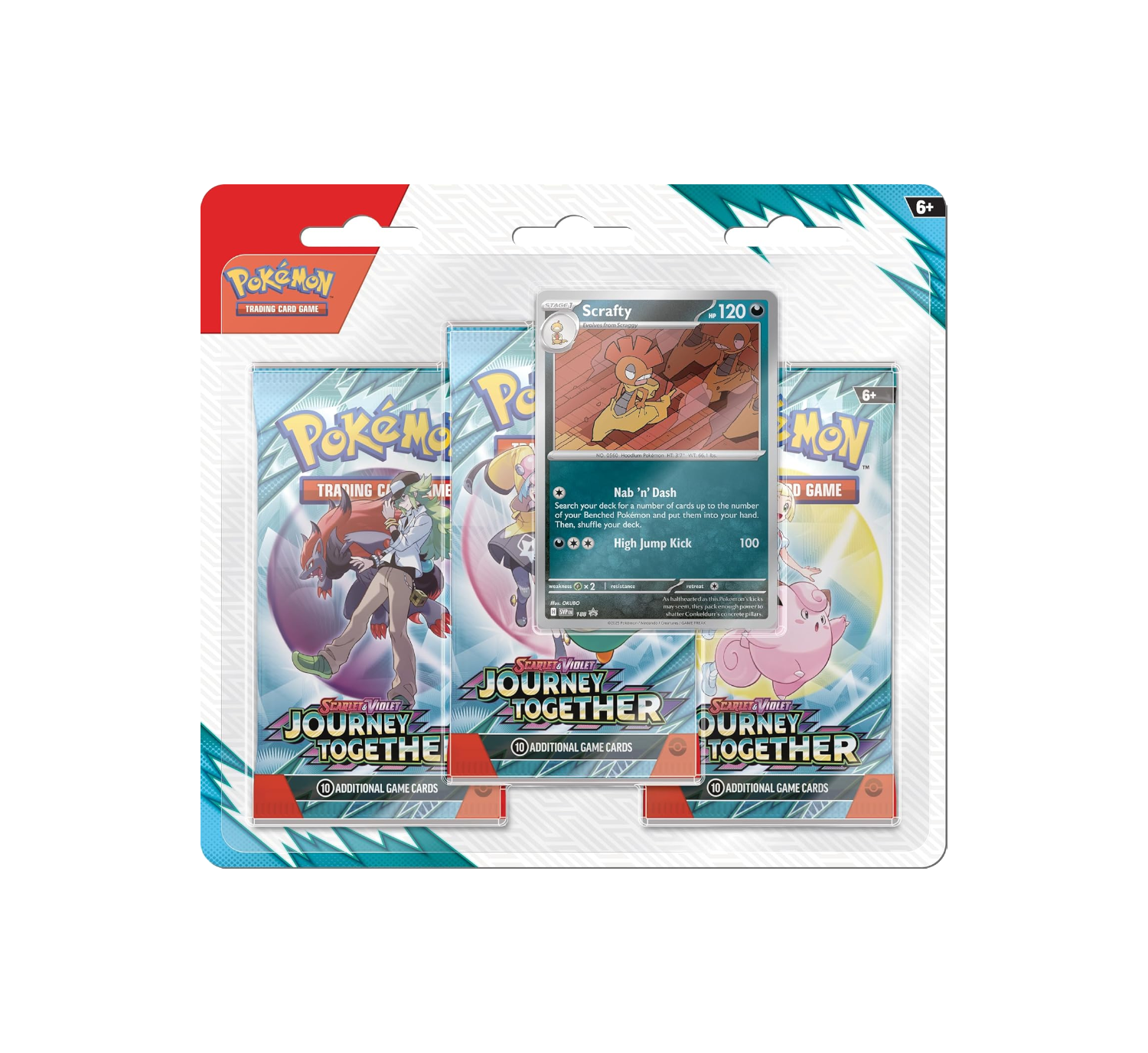 Every great Pokémon journey is shared with trusted partners! The Scarlet & Violet—Journey Together blister pack celebrates powerful and unlikely duos. This pack includes 3 booster packs from recent Scarlet & Violet sets, giving you three chances to discover powerful Pokémon ex, stunning illustration rares, and game-changing ACE SPEC cards. The real treasure is the guaranteed foil promo card—choose between the swift, airborne Yanmega or the tough, streetwise Scrafty to add to your collection. It's the perfect way to expand your team with two very different, but equally formidable, Pokémon.